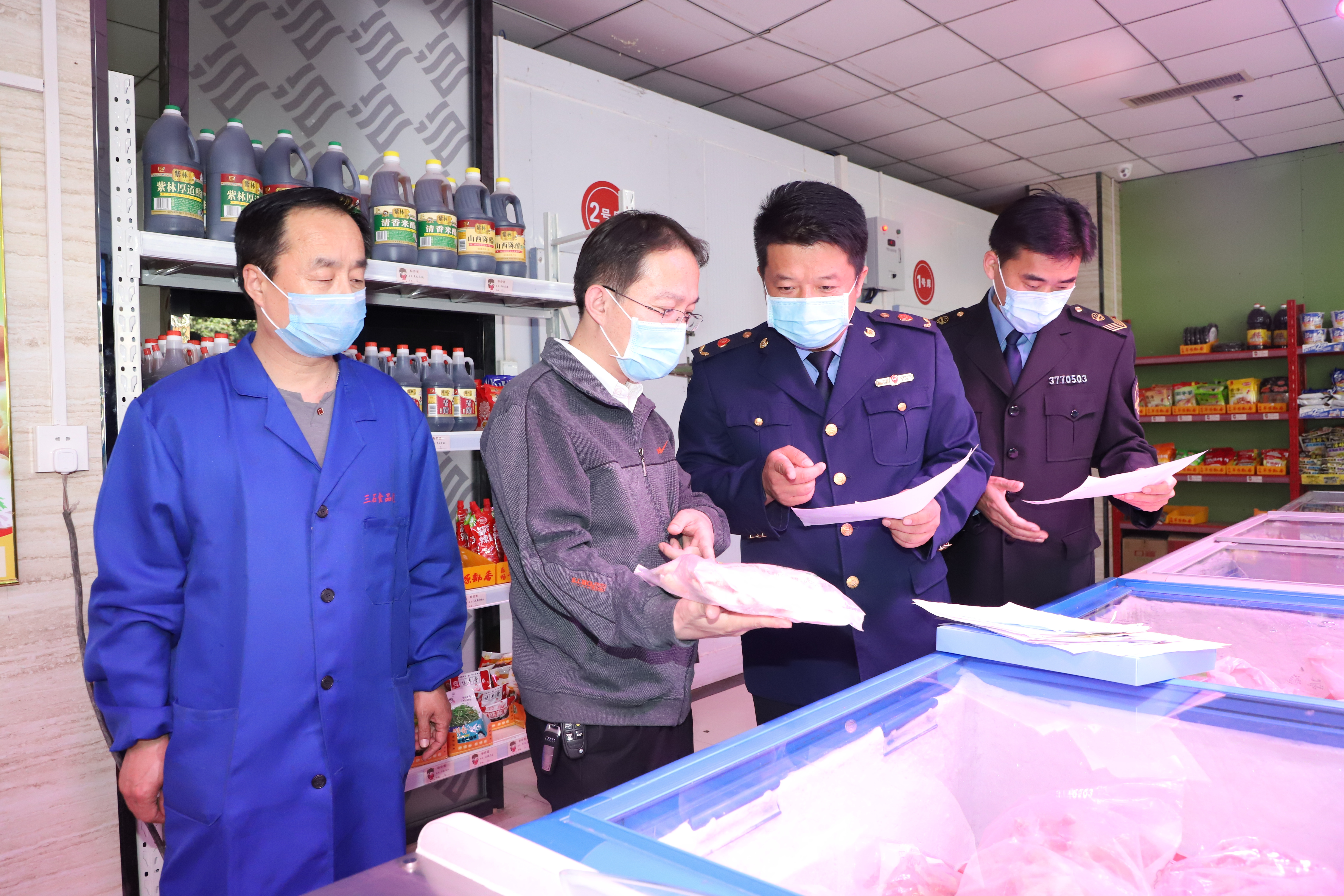 充足的物资保障和价格平稳是满足群众日常生活需求的第一关,茌平区三石食品有限公司发挥资源优势,采取多种渠道对接货源,在区市场监管局的规范指导下,先后与济南和寿光蔬菜基地,以及雨润、双汇、维尔康等生鲜肉食品公司签订合同,构建食品安全追溯体系,把控食用农产品的源头。严格落实索证索票,由专人重点核查产品的检验报告、动物检疫合格证、肉品品质检验合格证等资质,织密食品安全网。筹集资金3万余元购置食品快检设备,对食品中的甲醛、吊白块、二氧化硫、亚硝酸盐、双氧水、硼砂、农药残留进行初步检测,从而严防严控食品安全隐患。加强米面粮油、生鲜果蔬的供应能力,供应商品达到近百类、上千种,确保货源足、品种多、质量优、价格稳。