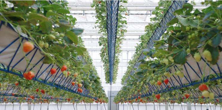 从玻璃温室草莓大棚自动开窗、自动卷帘、自动调温、自动排风、水肥自动滴灌系统等11项智能控制功能实现草莓“0污染”,到利用工业余热对玻璃温室供暖,比普通玻璃温室采摘期延长3—4个月,产量提升4倍;