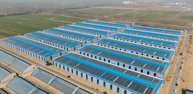 在水产养殖方面,信发现代农业产业园投资建设了12个现代工厂化养殖棚,采用工业化养殖模式,配备数字智能管控系统,运用国际先进的循环水处理措施,进行工业化高密度养殖,养殖效率是普通坑塘养殖的30倍。同时,为发挥土地效益,鲈鱼养殖棚顶布设了太阳能光伏板,仅此一项,每年亩产效益额外增加2万元,推动园区向零碳农业发展。