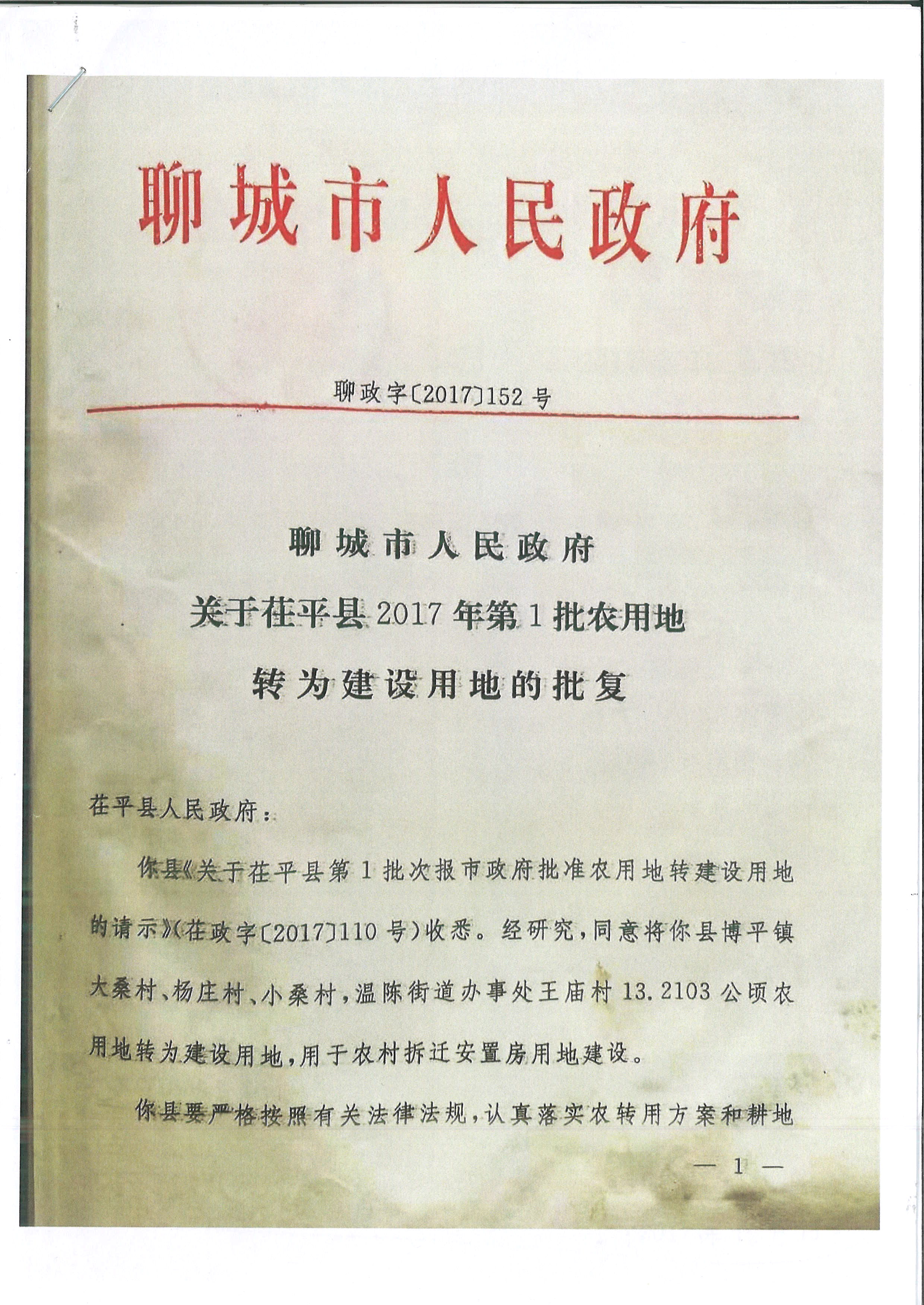 聊城大外环建设茌平区博平段回迁安置项目征收土地信息