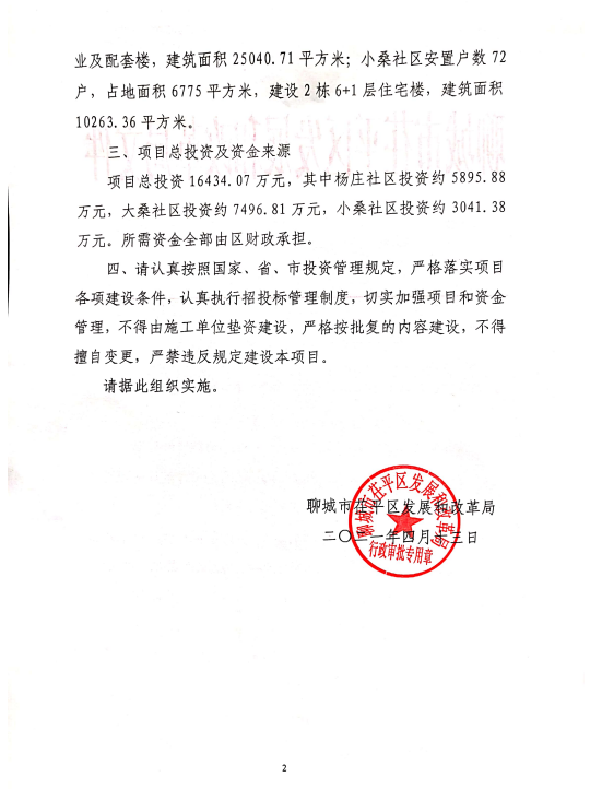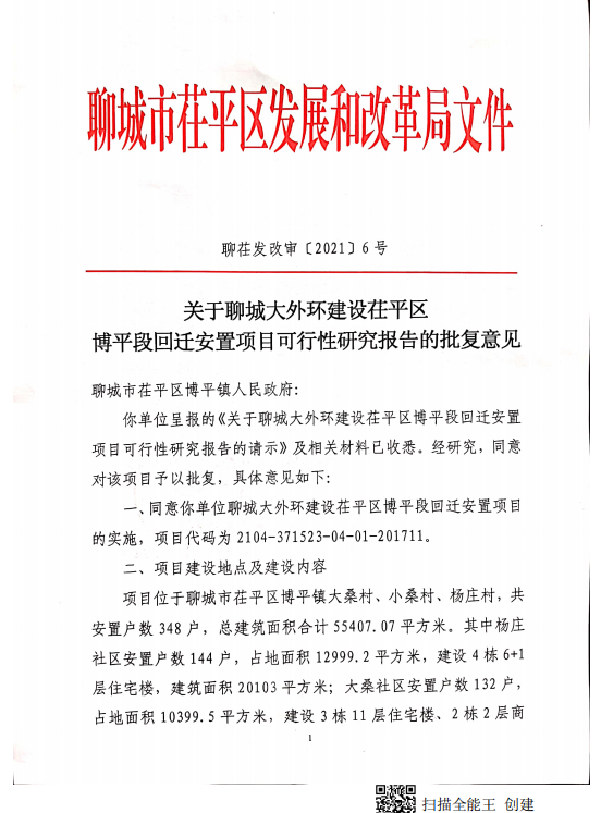 聊城大外环建设茌平区博平段回迁安置项目可行性研究报告批复