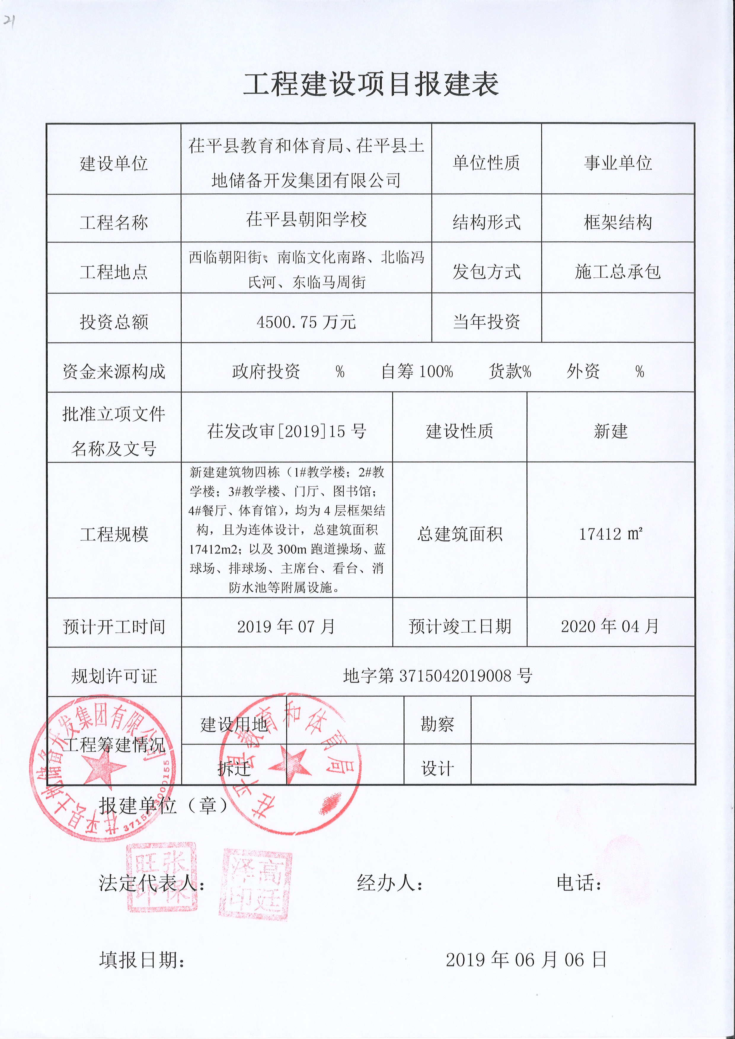 茌平区朝阳街学校项目报建表