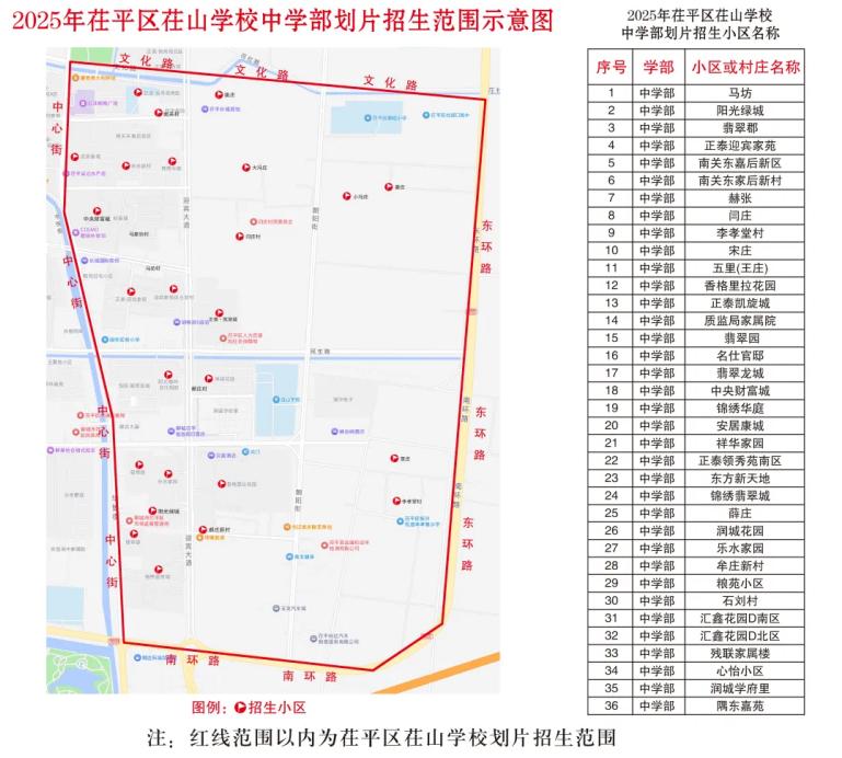 茌山学校初中部:文化路以南、中心街以东,南环路以北(仅限振兴街道、信发街道户籍)。本片区随迁子女可以选择第三中学初中部、振兴街道中学翰林校区。
