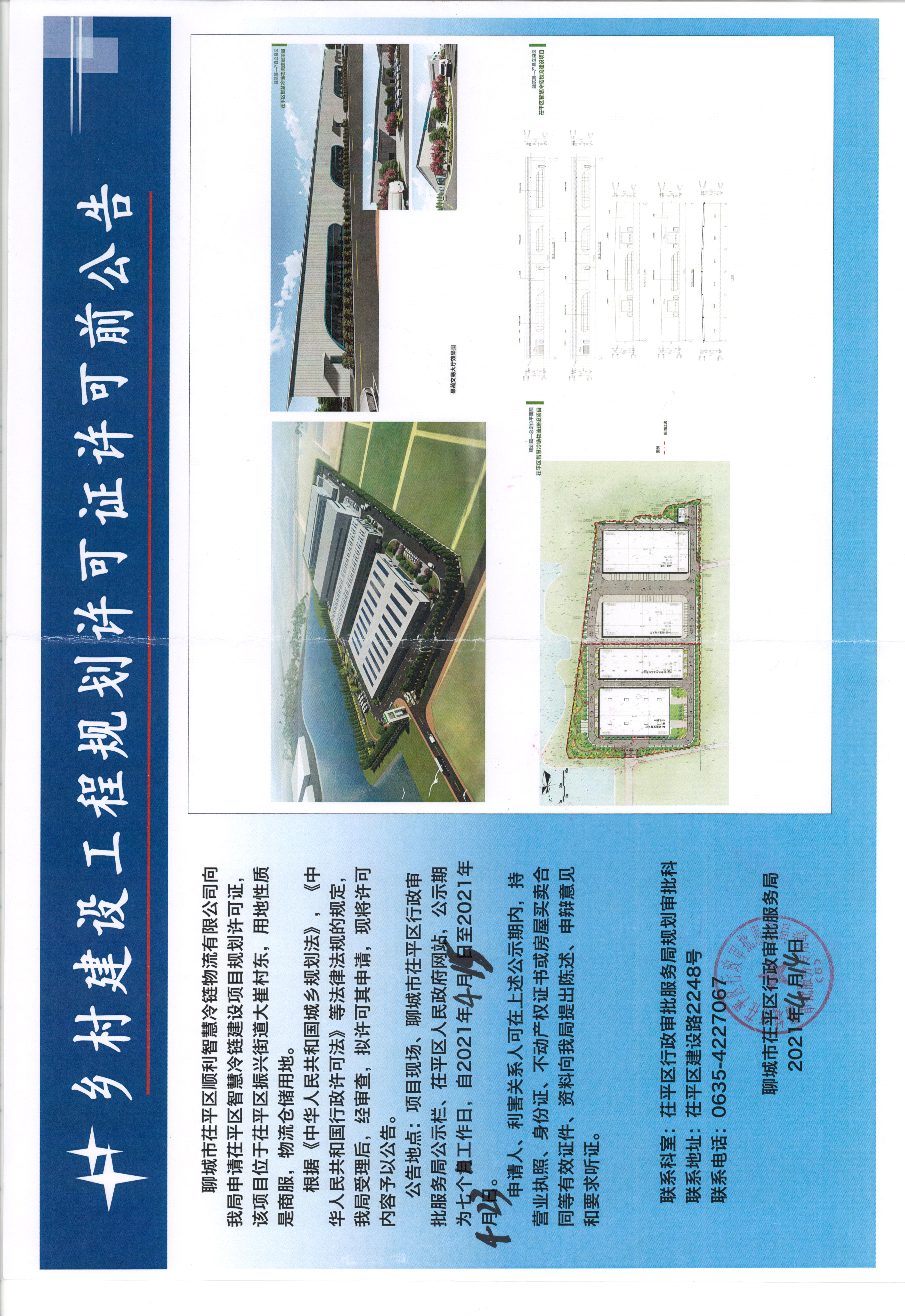聊城市茌平区行政审批服务局关于茌平区智慧冷链建设项目乡村建设工程规划许可证许可前公告