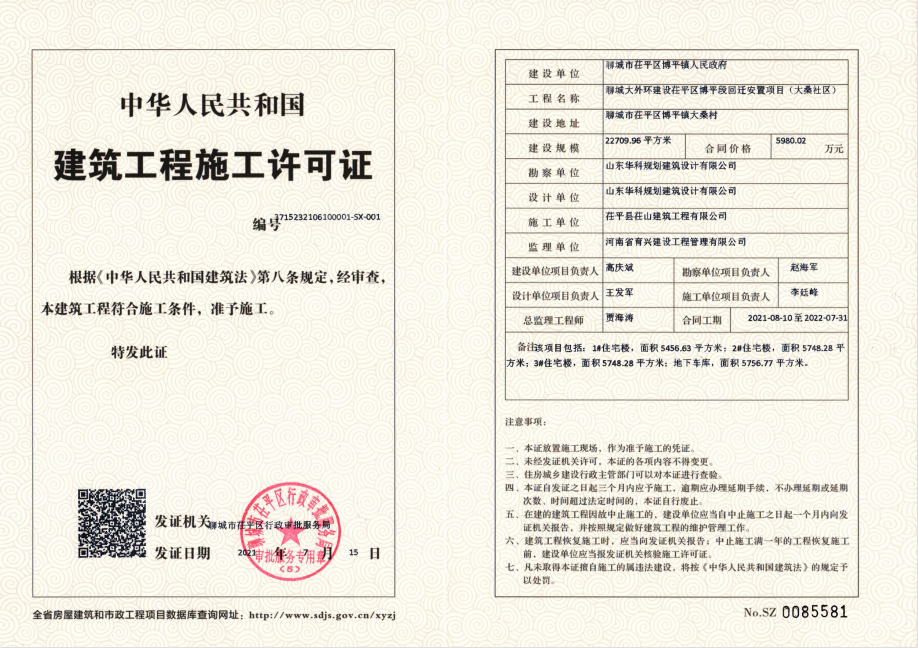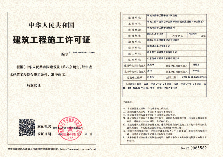 聊城市茌平区行政审批服务局关于聊城大外环建设茌平区博平段回迁安置项目施工信息