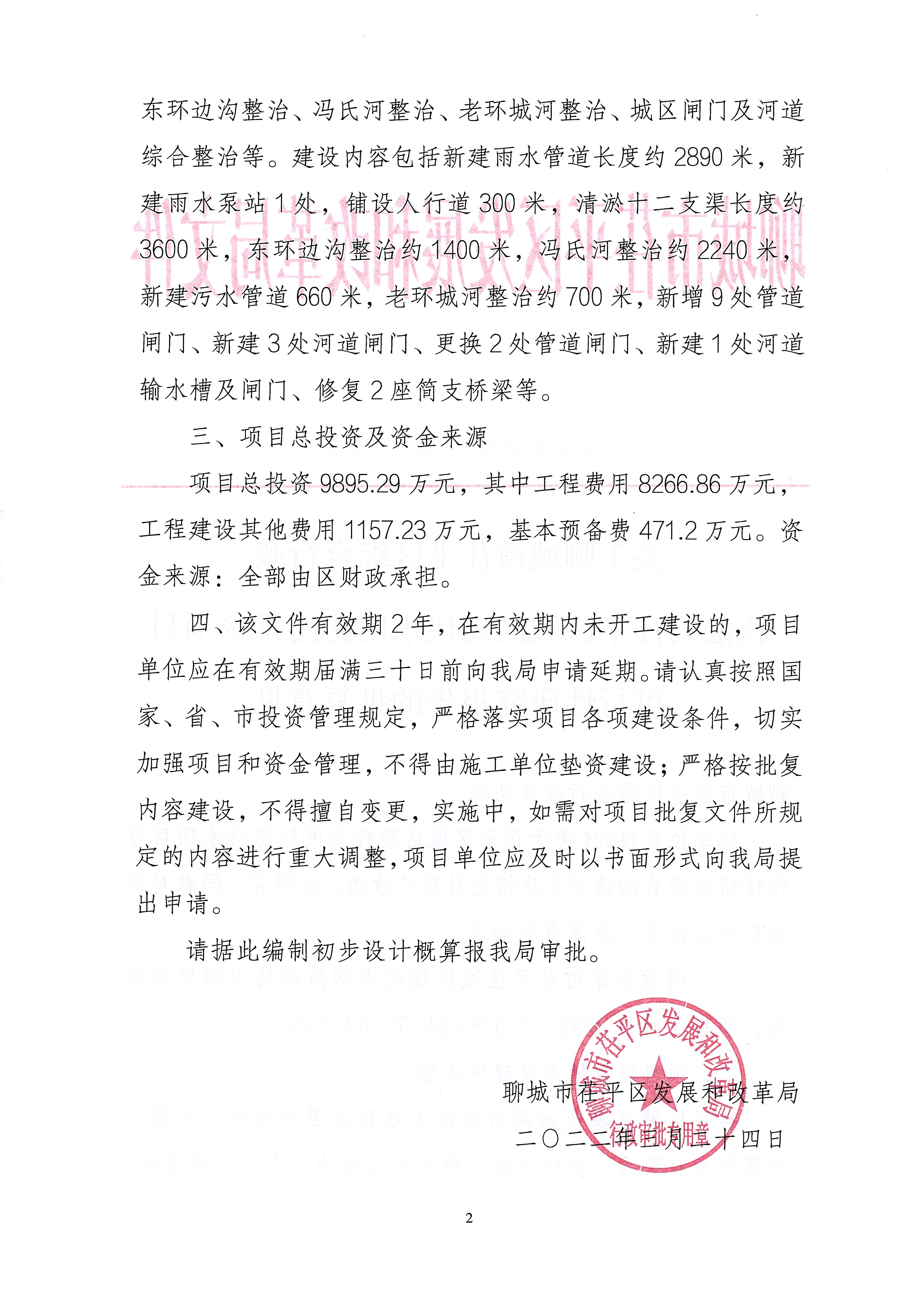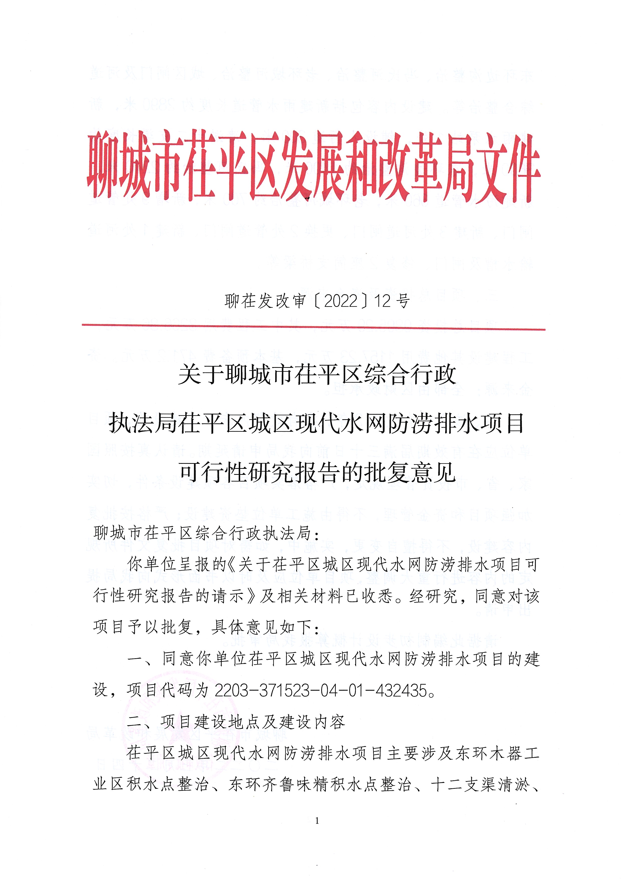 【批准结果信息】茌平区综合行政执法局茌平区城区现代水网防涝排水项目可行性研究报告批复意见