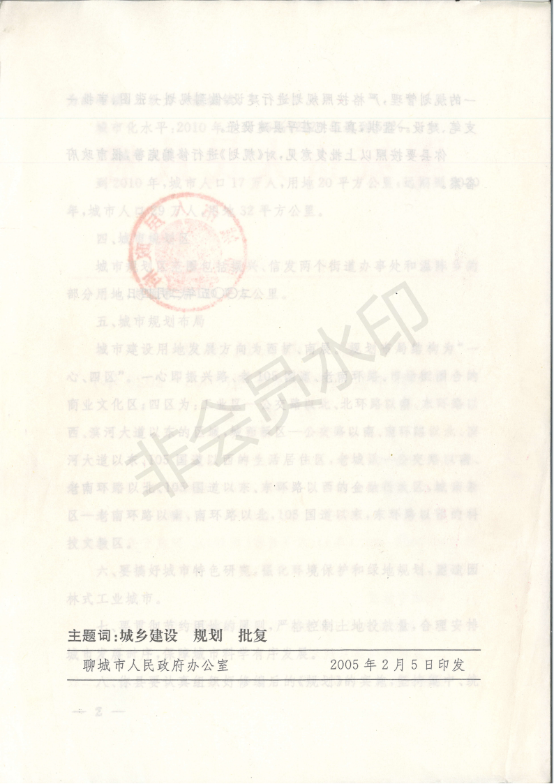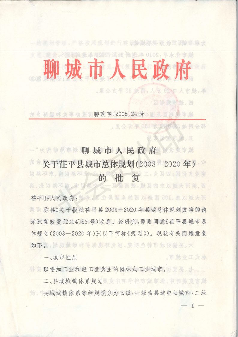 聊城市人民政府关于茌平县城市总体规划(2003-2020)的批复