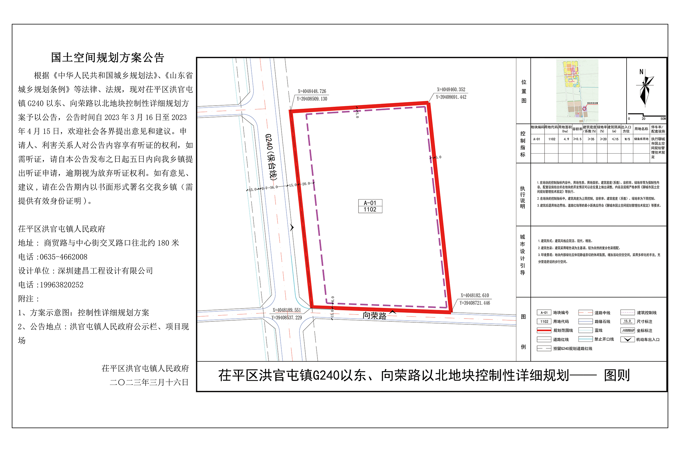 聊城市茌平区洪官屯镇G240以东、向荣路以北地块控制性详细规划公示