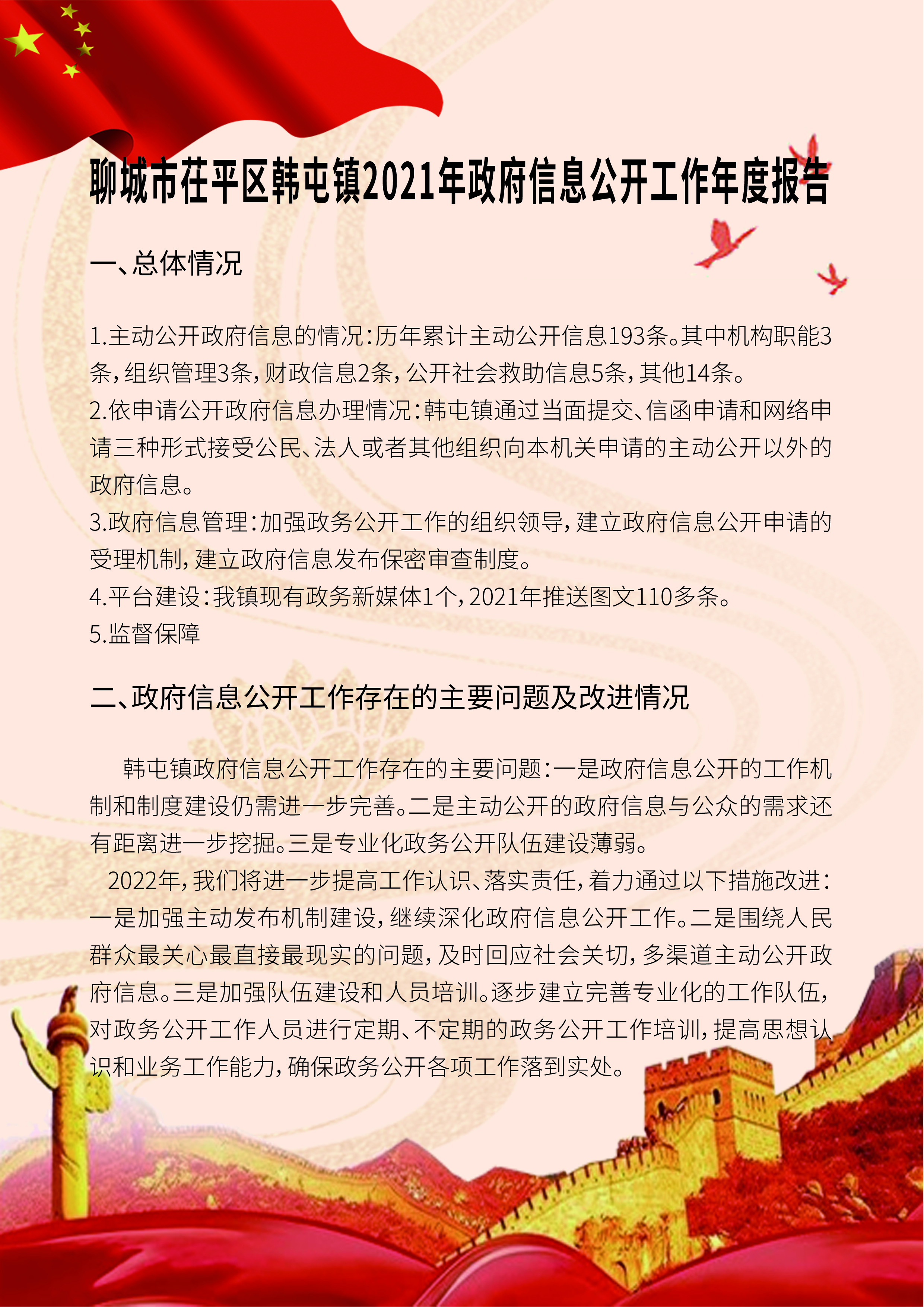 聊城市茌平区韩屯镇 2021年政府信息公开工作年度报告